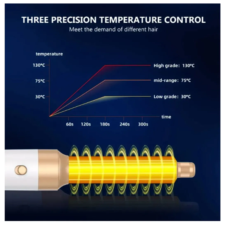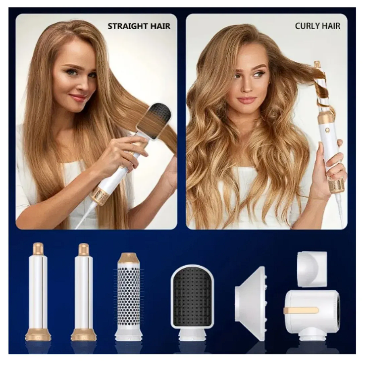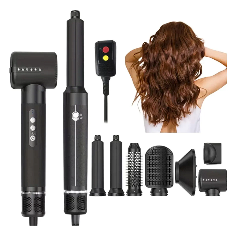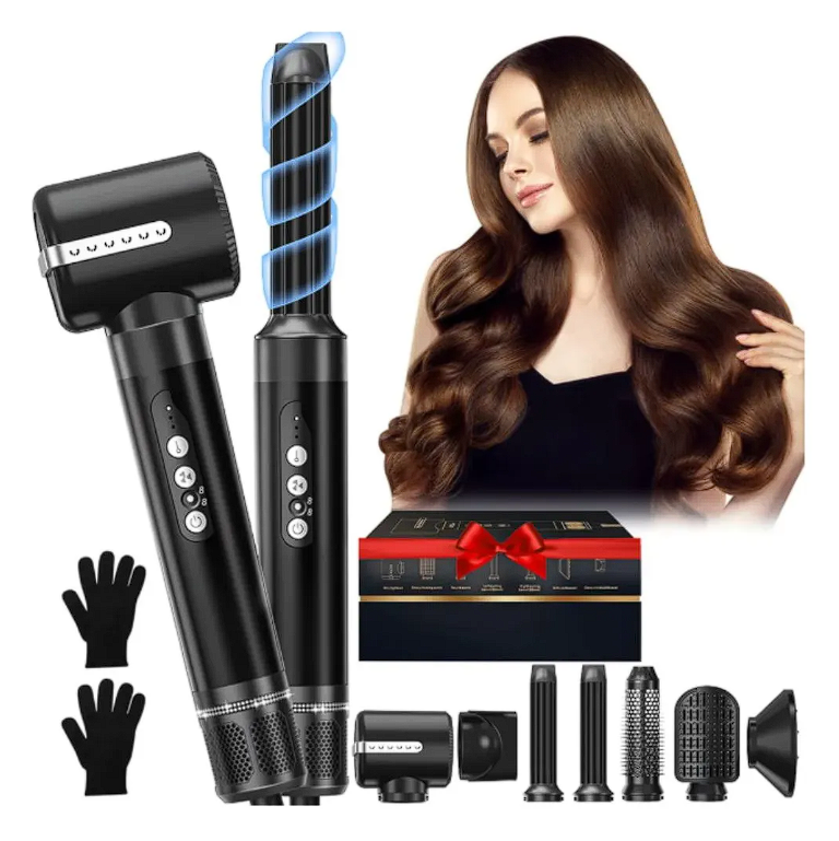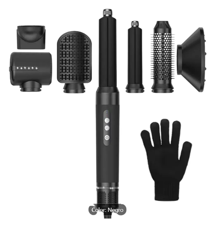 Tipo de producto: Peine multifunción de aire caliente Dimensiones del producto: longitud 287 mm, diámetro máx. 46 mm Potencia: 1400 vatios, 110 voltios CA Tipo de cabello: Todo tipo de cabellos Tiempo óptimo de peinado: 8-30 minutos (tiempo total de peinado para cabellos rizados) Nº de velocidades: 3 velocidades + 3 velocidades de aire caliente (9 velocidades), 3 velocidades de aire frío y 1 velocidad inversa Motor: Motor de alta velocidad 1100. 000 rpm Longitud del cable de alimentación: 2 m Patrón de flujo de aire: En línea Función de giro de 360° El kit de secador de pelo y estilizador es una herramienta multifuncional para el cabello con siete cabezales diferentes intercambiables. Funciona como secador de pelo, cepillo de aire caliente, peine alisador, rizador de pelo giratorio automático, voluminizador de peinado de un paso, cepillo de peinado y cepillo alisador, lo que te permite crear rápidamente el peinado deseado y ahorrar tiempo. El cepillo secador de pelo es de 1400 W, que puede calentarse rápidamente, el secador de pelo está recién mejorado equipado con un motor sin escobillas de alta velocidad de 110,000 RPM, velocidad del viento de hasta 65.6 ft/s, lo que te da un secado rápido mientras mantiene bajo calor, garantiza que tu cabello permanezca suave y suave. voluminoso. El secador de pelo es fácil de usar, función de apagado anti-mal contacto mejorada, el motor sin escobillas de alta velocidad genera un fuerte flujo de aire puede secar el cabello en poco tiempo, satisface todas las necesidades de peinado. Cepillo de aire caliente con estándar de voltaje estadounidense de 110 V, enchufe de seguridad ALCI con protección contra fugas y función de apagado automático, en línea con los requisitos de seguridad de EE. UU.; El alambre de rotación profesional de 360 no se nuda, más seguro; cepillos de pelo de aire caliente antiquemaduras con accesorios de material resistente a altas temperaturas, diseño mejorado de protección térmica para proporcionar una experiencia de uso cómoda e íntima. Cepillo de aire caliente mejorado, estilo de salón completo de manera eficiente con bajo ruido, y el diseño de mango delgado es más cómodo y cómodo de usar. Es ligero y fácil de llevar, lo que te da la libertad de dar forma a tu cabello de la manera que desees, en cualquier momento y en cualquier lugar, adecuado para la familia, viajes de negocios, bodas y vacaciones. También es un regalo perfecto para amigos, familiares u otros seres queridos, como regalo del día de la madre, regalo de Navidad